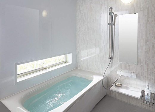 キレイがつづく有機ガラス系新素材を浴槽・水栓・カウンターに標準採用。毎日のお風呂掃除がラクになる、いつもキレイなくつろぎのバスルーム「Oflora(オフローラ)」。壁床やカウンターの色柄だけでなく浴槽の形までお選びいただけるのが人気です。 |