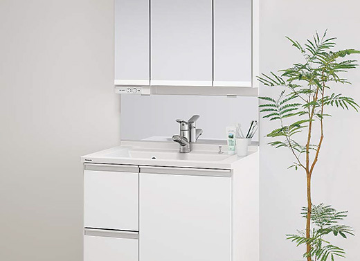 スタイリッシュに、機能的に、広々と。 女性の使いやすさをしっかりと考えた 洗面ドレッシングです。ヒーターレスでくもりにくいミラー、大き目の家電もおまかせのすっきり家電収納、使い勝手とお手入れのしやすさにすみずみまでこだわったカウンターなど、いいところづくしです。 |
