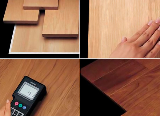 天然木が持つ、「木目」「木肌」「照り」「艶」「色彩」の5つの要素を追求し、無垢(ムク)材に近い素材感を表現しました。建具においては、人気の「ウォールナット」「チェリー」「メープル」「オーク」の4つの樹種に「スモークオーク」「ホワイトオーク」「ホワイトアッシュ」「しっくいホワイト」を加えた、8つの基本色柄により、多様なインテリアとのコーディネートが可能になりました。システム階段、床材、内装ドア、玄関用収納、収納用建具の折れ戸や開き扉などお客様のお好みの色、質感をお選びください。 |